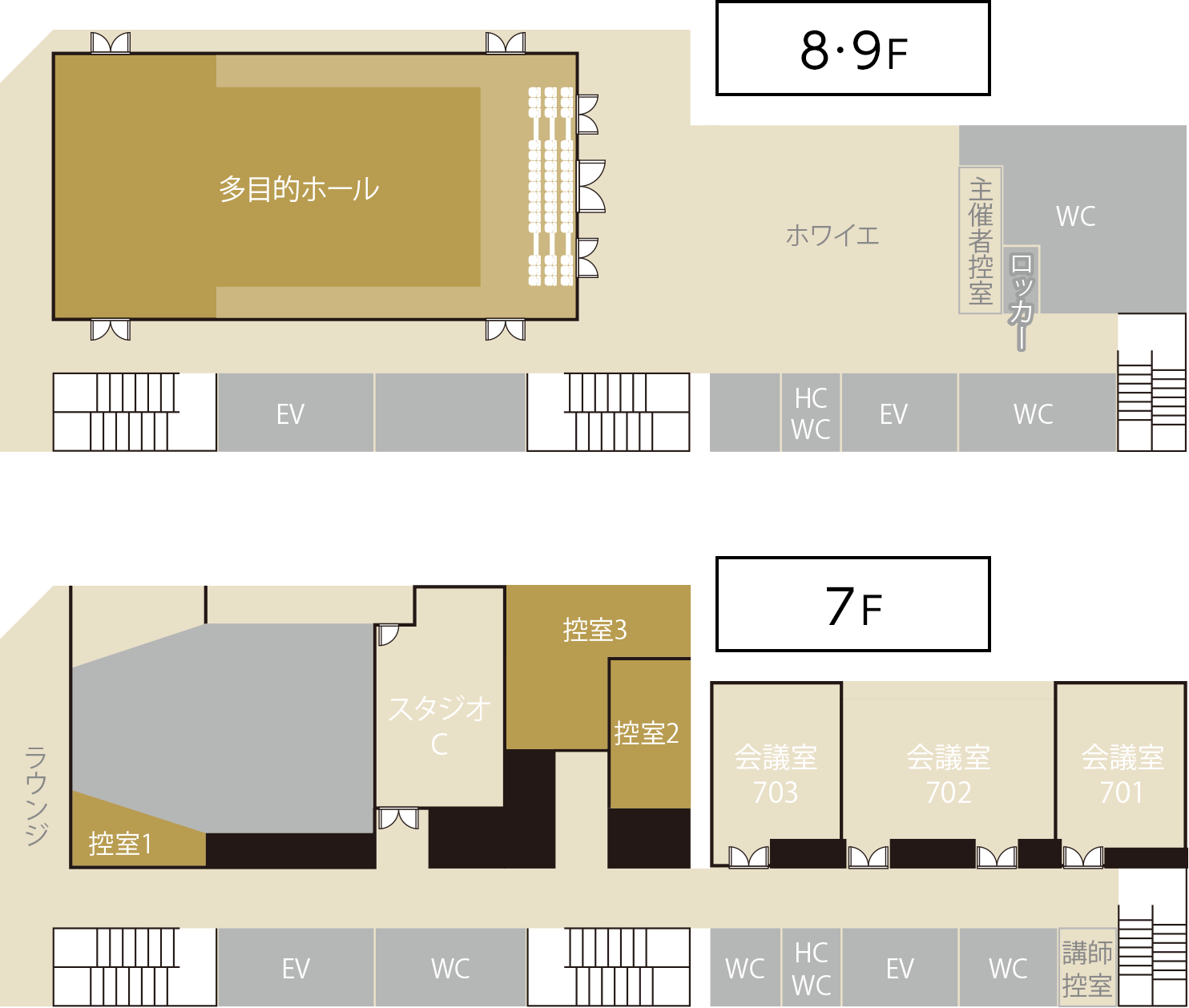 定員:480人 / 330.4 ㎡(8F・264.0㎡、9F・66.4㎡)