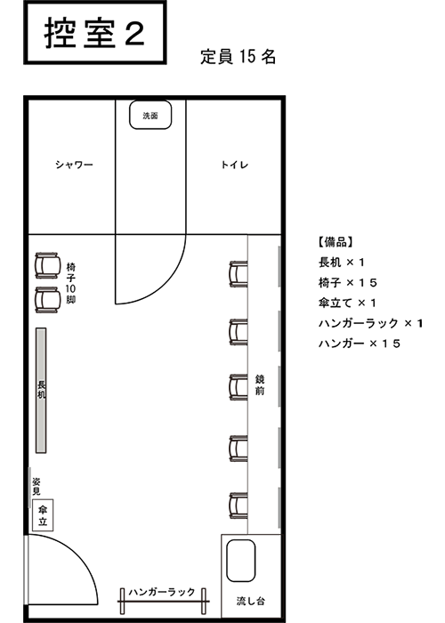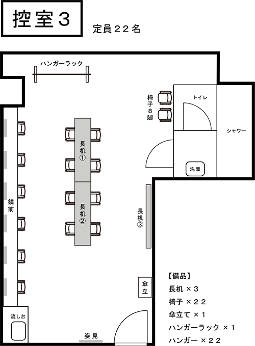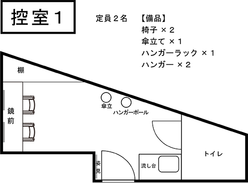 主催者控室のほか、事前予約制の控室が3室ご利用いただけます。
