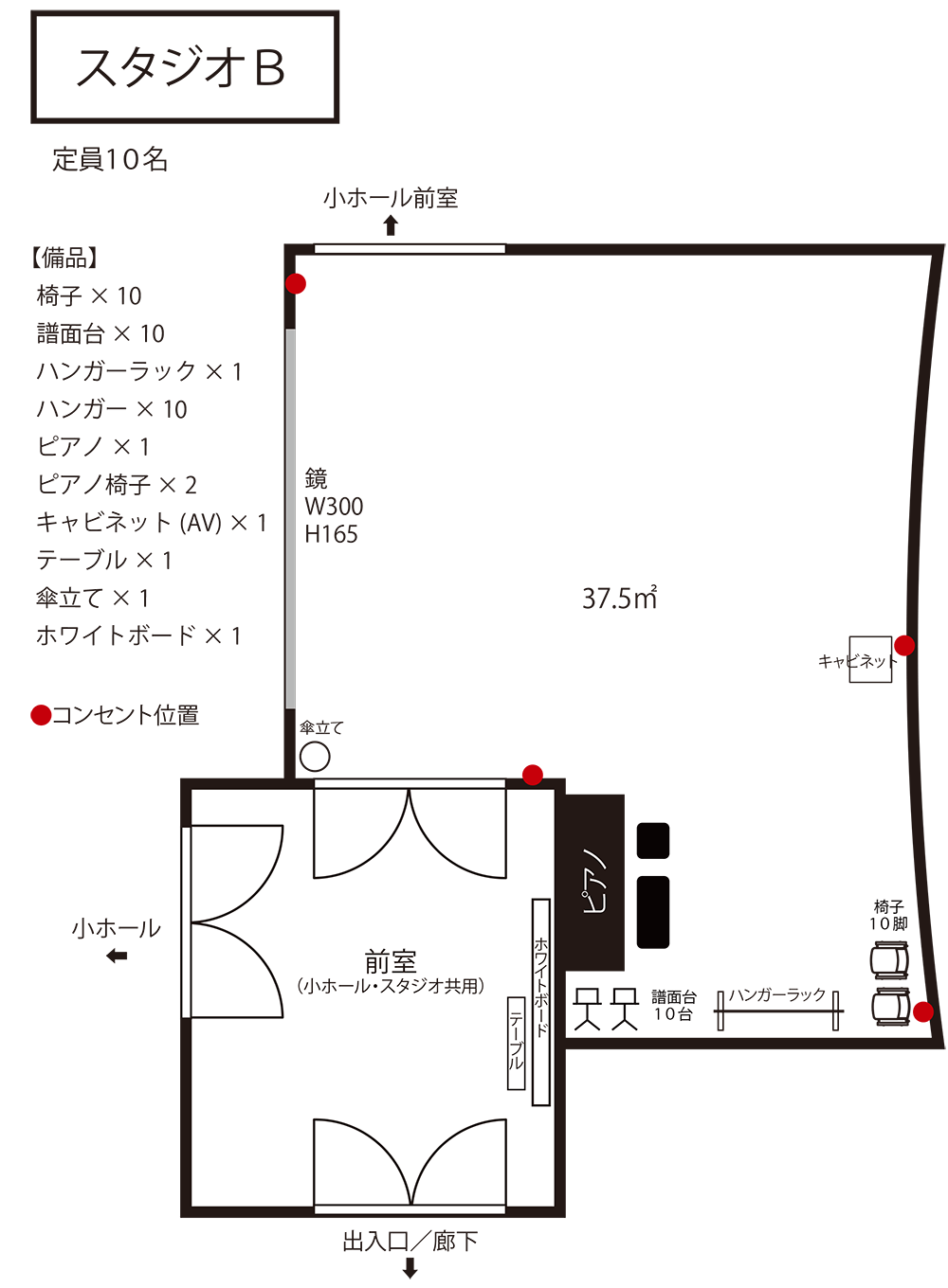 ・ダンス利用の際は、ヒールカバーの装着・滑り止めの使用禁止など利用条件があるため、予約時にご相談ください。